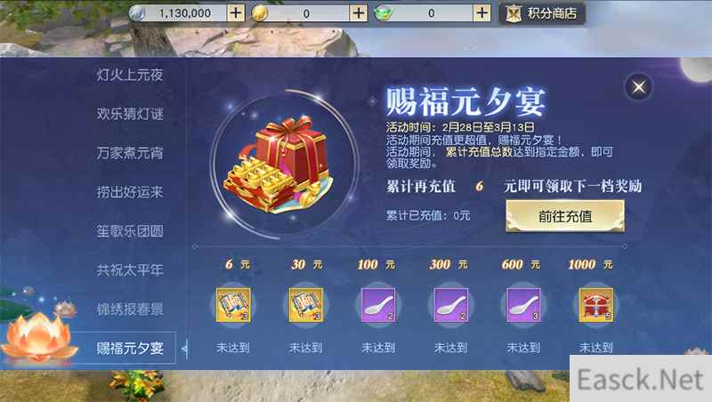 同时,天命者们只要在活动期间累计充值总额达到指定数目,即可在“赐福元夕宴”活动中领取包括白玉匙、高级魂印、寻龙尺等超值奖励!