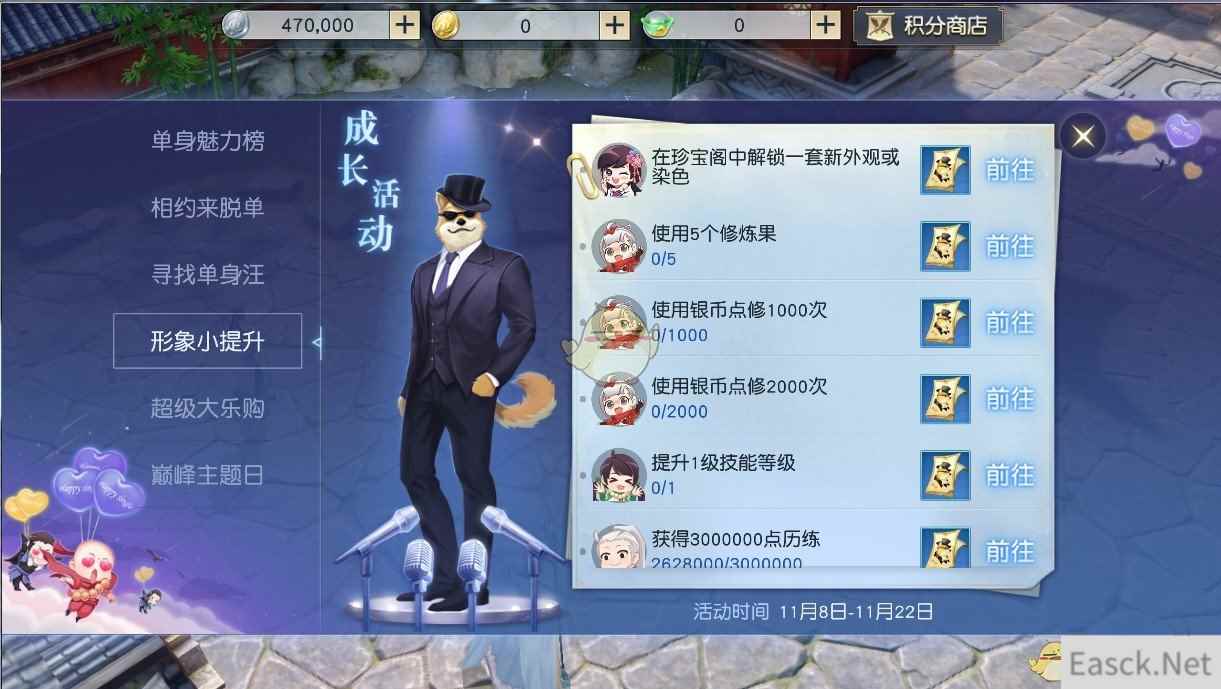 单身汪虽好,许多天命者们还是想要脱单。在双十一狂欢期间,天命者们可以通过一系列任务,参与到形象小提升活动之中,打造、展示一个全新的自己,为早日脱单而努力!已经结为夫妻或是有意中人的天命者,通过这个活动同样能改变形象、提升双方感情哦!