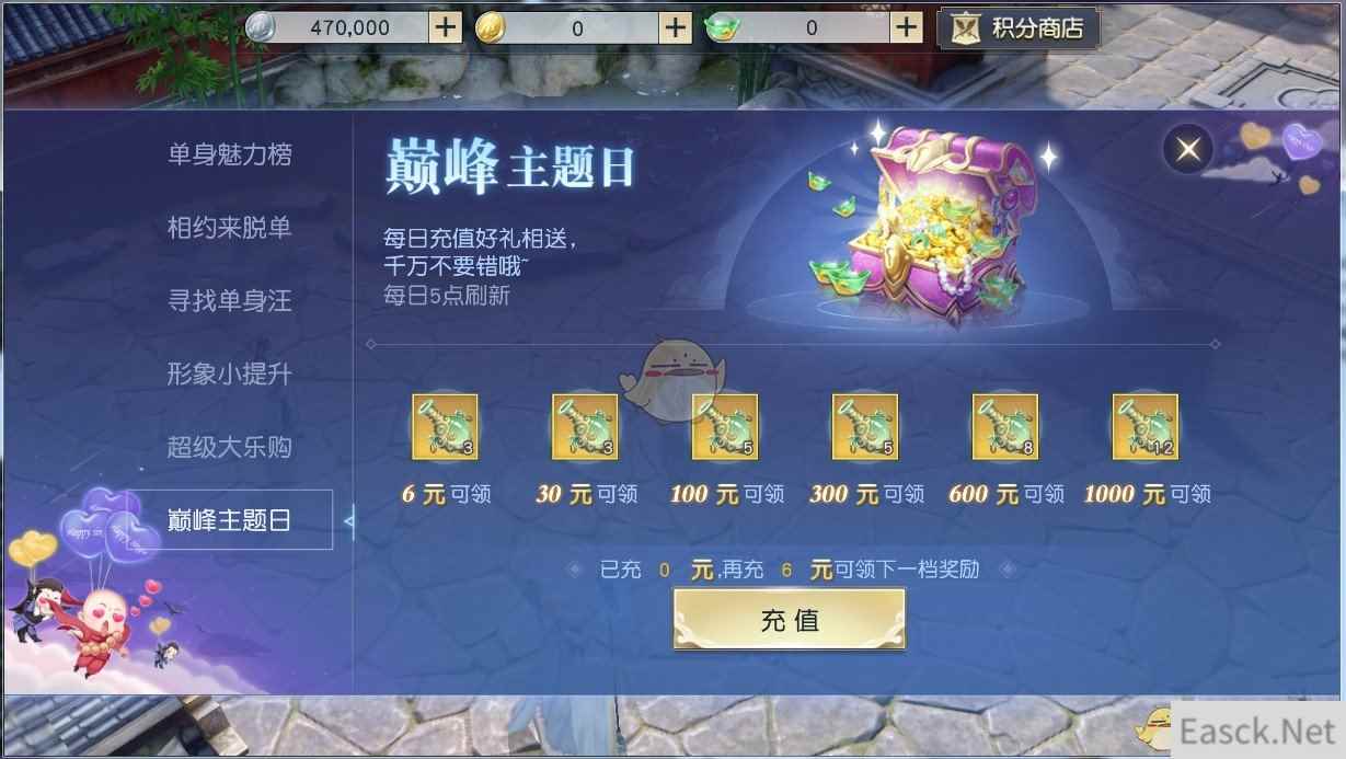 同时,活动期间还将上线“巅峰主题日”活动,每天充值都有好礼相送!当超级大乐购开启“装备灵瓶单身秀”、“技能修炼双人骑”、“魂石宝石贴心饰”等不同主题日后,还会有不同惊喜送上,不要错过咯!