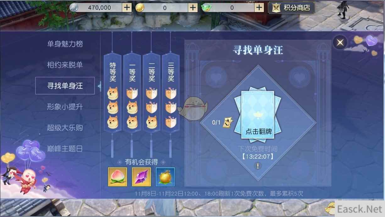 对于身为单身汪的天命者来说,单身是一种态度。双十一期间,单身有理也有礼——天命者们通过各种活动均可获取【活动门票】,找到更多单身汪,就能获得更多奖励!