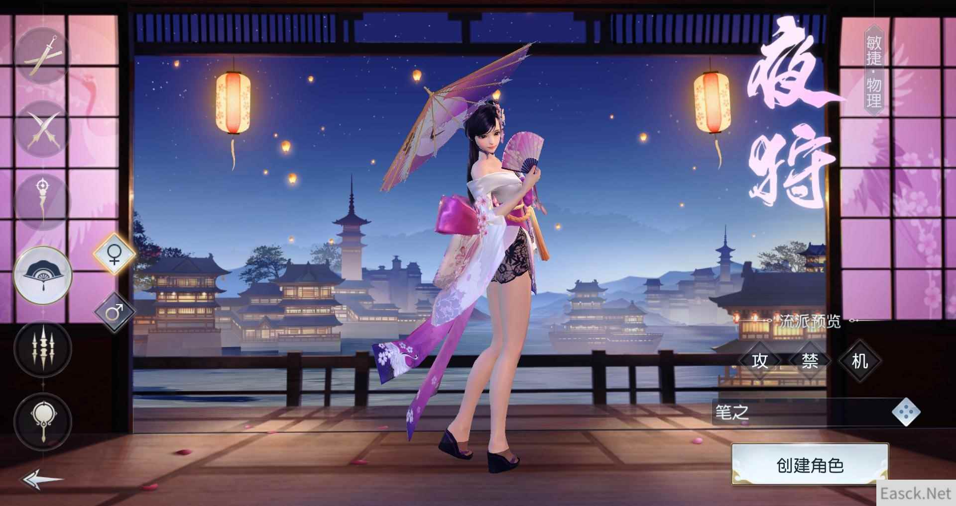 因着对“美”的追求,“夜樱”即使在上阵对敌之际亦优雅从容、美不胜收,成就她“最独特”花魁女弓手之名——夜樱对敌的利器,是她手中绘制精美、粉雕玉琢般的纸扇;是那把平时置于腰间、偶尔撑起遮阳挡雨的纸伞!