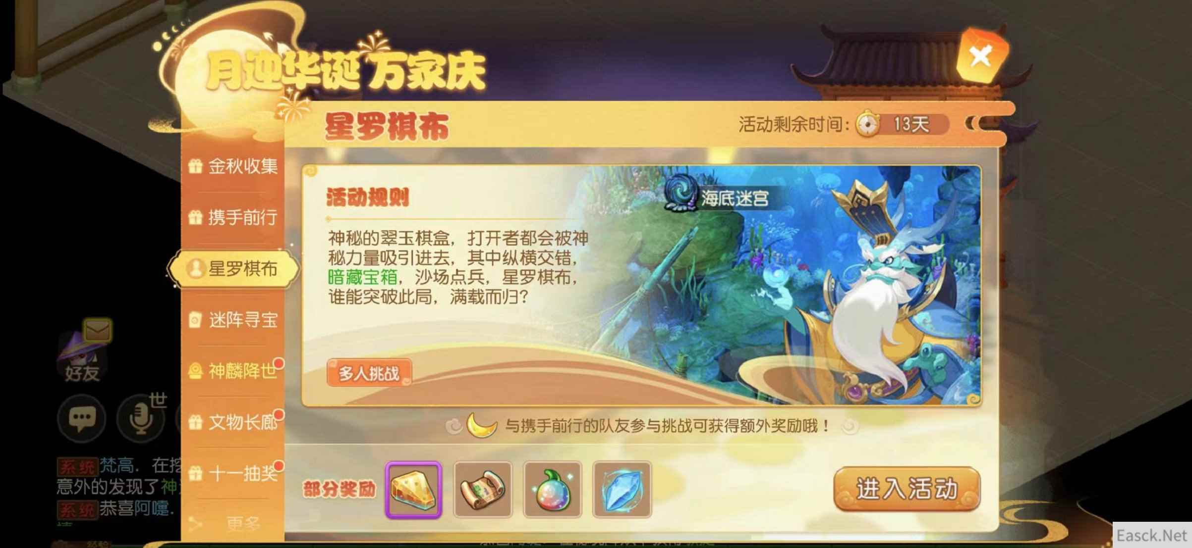 伴随着十一长假的临近,《梦幻西游》手游双节活动之“万家庆”环节已然开启。从即日起至10月6日,玩家可以参与迷阵寻宝、神麟降世、携手前行、金秋收集、星罗棋布·海底篇五大活动,赢取丰厚奖励,与好友一起度过一个难忘的线上长假!