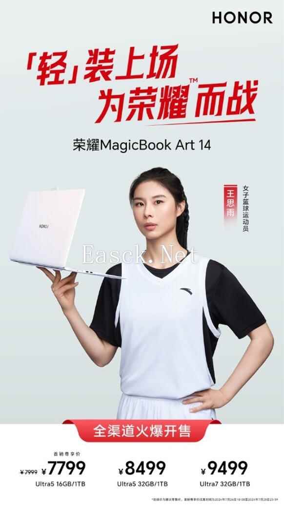 7月26日上午10:00,备受期待的荣耀超轻薄旗舰笔记本MagicBook Art 14正式开启首销。目前,产品在荣耀商城、各大授权电商、授权零售门店等渠道火热发售中,Ultra5+16GB+1TB售价7999元;Ultra5+32GB+1TB售价8499元;Ultra7+32GB+1TB售价9499元。其中,Ultra5+16GB+1TB版首销限时优惠200,到手价7799元。