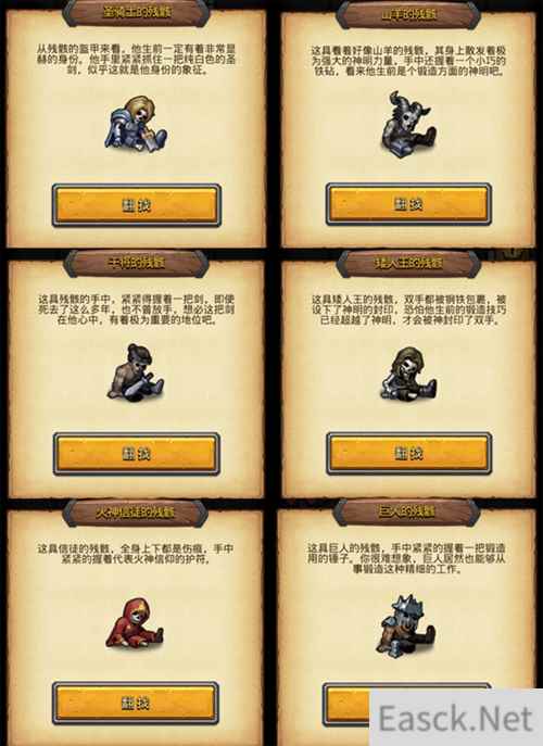 你将会遇到圣骑士的残骸,继承他的纯白圣剑;在干将的残骸中找到莫邪;还有矮人王的王权刻印、火神的雕像、山羊的炙热风箱......属于诸神们的武器,等你一一收集。