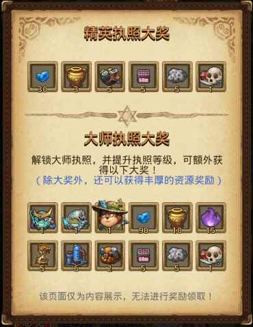 爆屏奖励的探险执照又来啦!和第一、二季度一样,本次探险执照分为精英执照和大师执照,奖励一览如下: