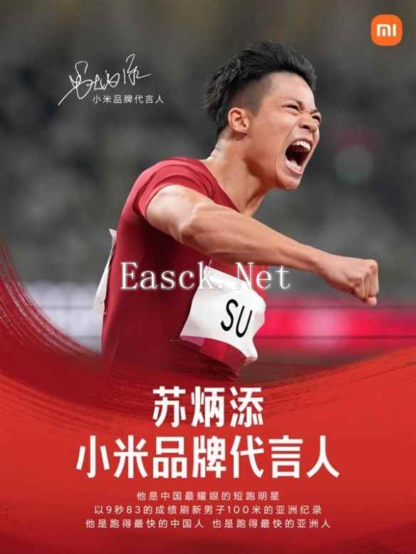 苏炳添当时表示:“喜欢小米,很自豪成为小米品牌代言人”。