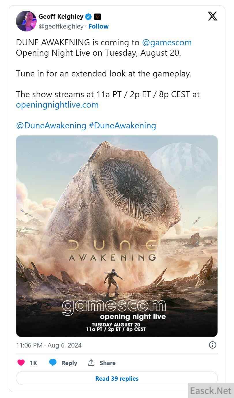 《沙丘:觉醒》确认亮相科隆展开幕夜现场直播