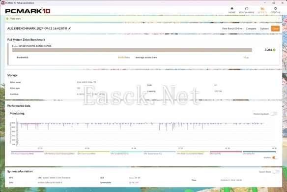 在模拟日常应用与工作站场景的PCMark 10存储测试中,这张昱联AS828 Ultra的表现十分出色,取得了3255分的成绩,表现十分突出。