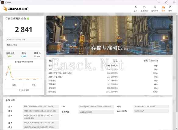 而在更贴合游戏玩家应用的ark存储测试中,这张昱联AS828 Ultra表现也同样不俗,取得了2841分的成绩