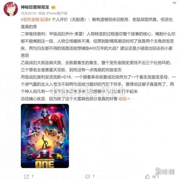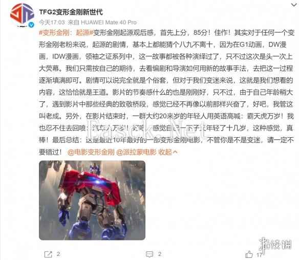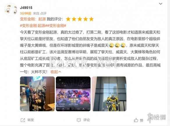 电影:《变形金刚:起源》9月15日-17日在中秋全国限时点映,电影9月27日全国上映,日前影片的第一波口碑已经在网上传播,综合来看,评价相当不错。