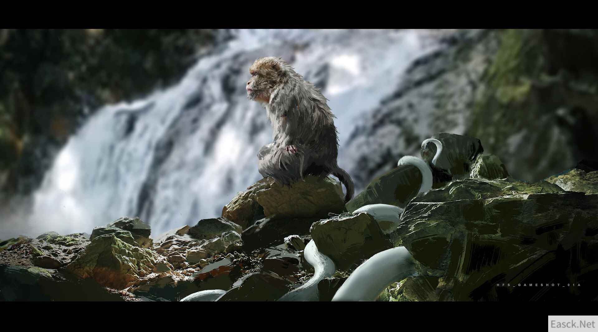 《黑神话:悟空》游戏早期概念图 猴子和白龙亮相
