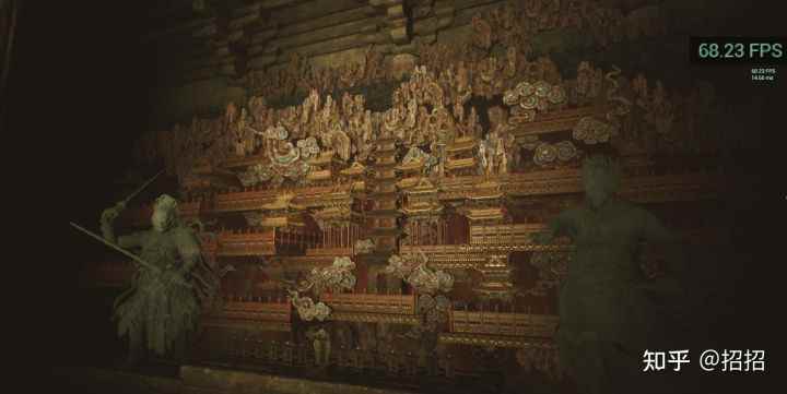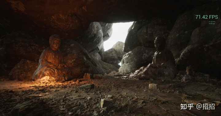 同时,《黑神话:悟空》技术总监招招也发长文对新的实机演示进行了技术总结,他表示,这次的目标就是:挑战更高的场景品质,向4k60帧做一次冲刺。 招招表示,Nanite才是拯救显卡的神器。游戏非常多的场景在Nanite的加持下获得50%以上的帧率提升。 以视频中这个大殿为例,是一个复杂度非常高的场景,里头的亭台楼阁都是非常精细的、可以放大作为场景建筑使用的高面数模型,在RTX2060@1080p下,开启Nanite可以轻松达到接近70fps,而关闭后大概是38fps左右。提升非常明显。