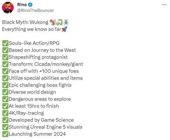 近日推特网友Rino总结了《黑神话:悟空》已知消息,评论区里许多老外表示对该作依旧很期待,虽然等待了太长时间。