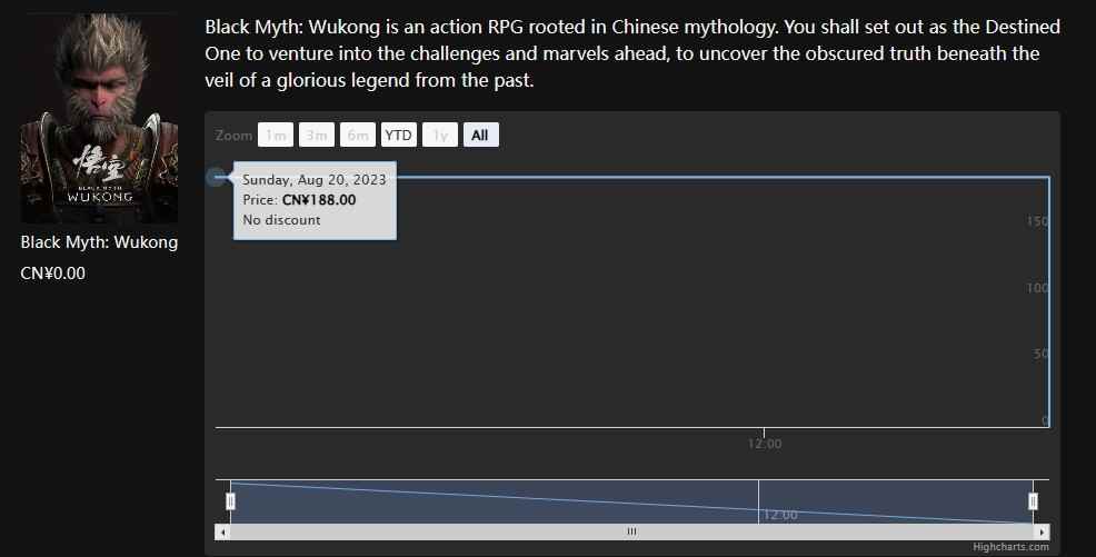 第三方网站数据清除《黑神话:悟空》售价 此前显示188元