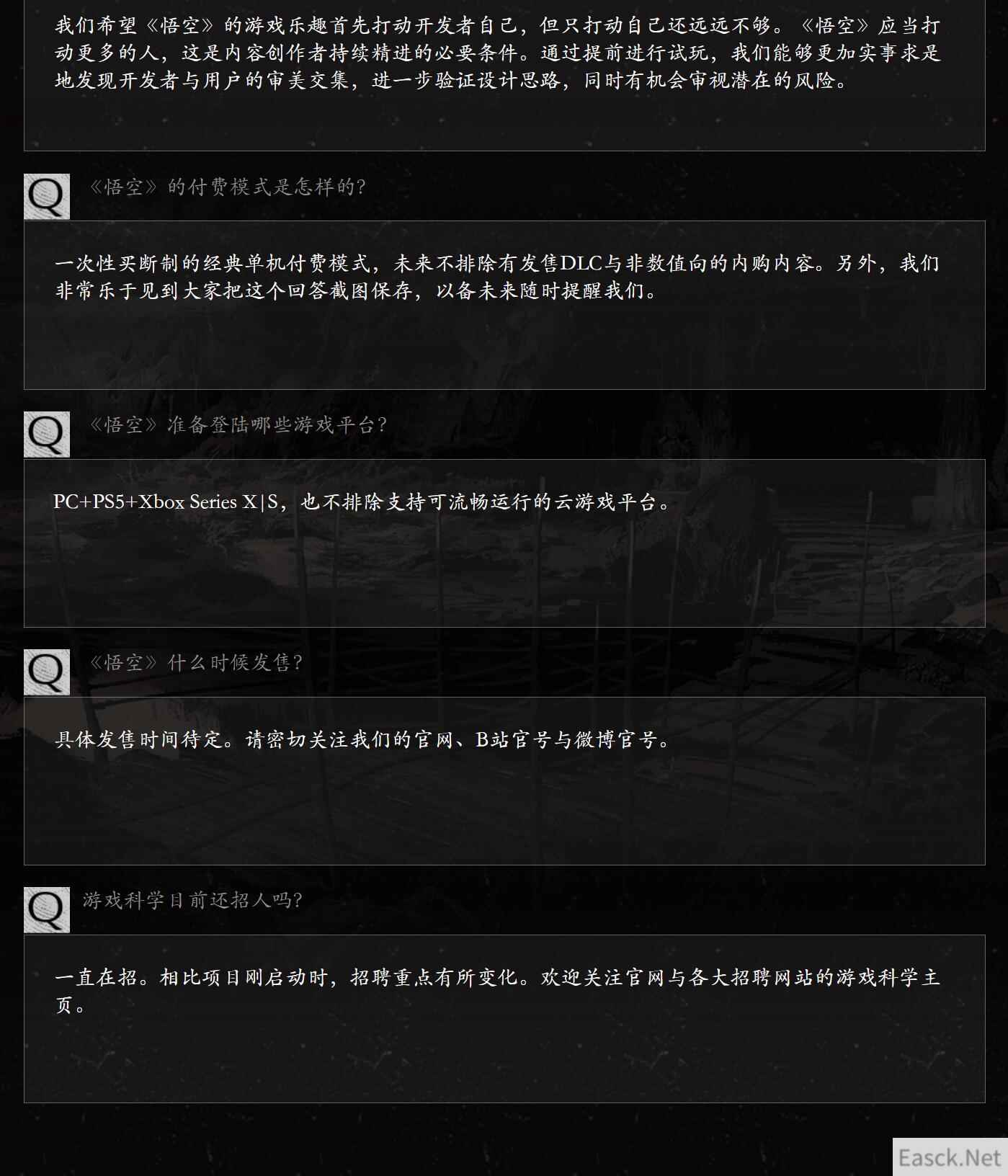 《黑神话:悟空》今日更新官网“常见问题”类目,对一些玩家比较关注的问题进行了解答。 根据官网页面介绍,《黑神话:悟空》将登陆PC、PS5和Xbox Series X|S平台,且不排除登陆云游戏平台的可能。