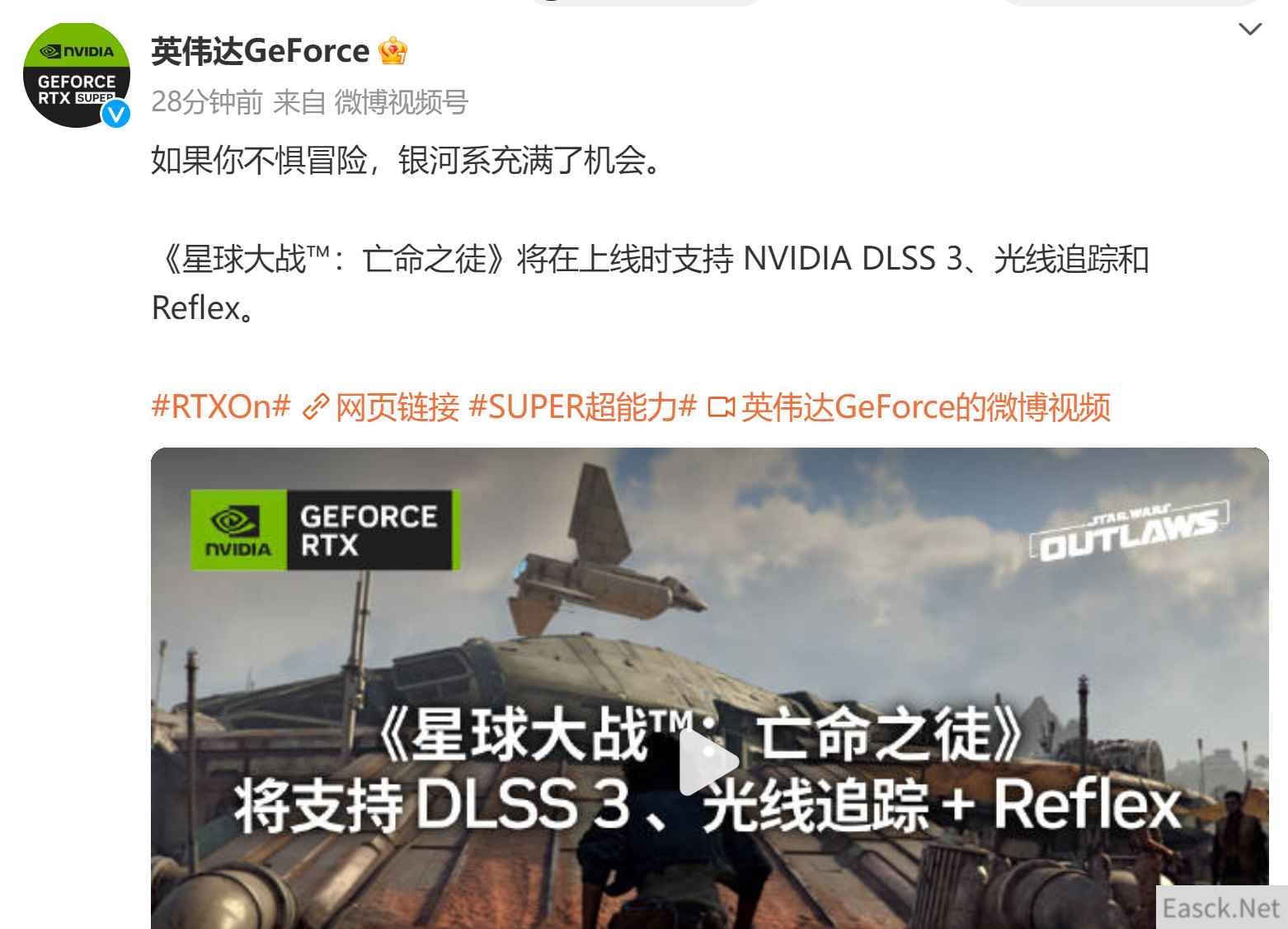 英伟达宣布《星球大战:法外狂徒》《黑神话:悟空》《永劫无间》《第一狂战士:卡赞》将支持DLSS 3和Reflex技术。
