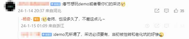 评论区有网友询问,春节想玩Demo,会有吗?杨奇回复称:“老师,也没多久了,不差这点儿”。据此说法,春节应该是不会有《黑神话:悟空》试玩Demo了。
