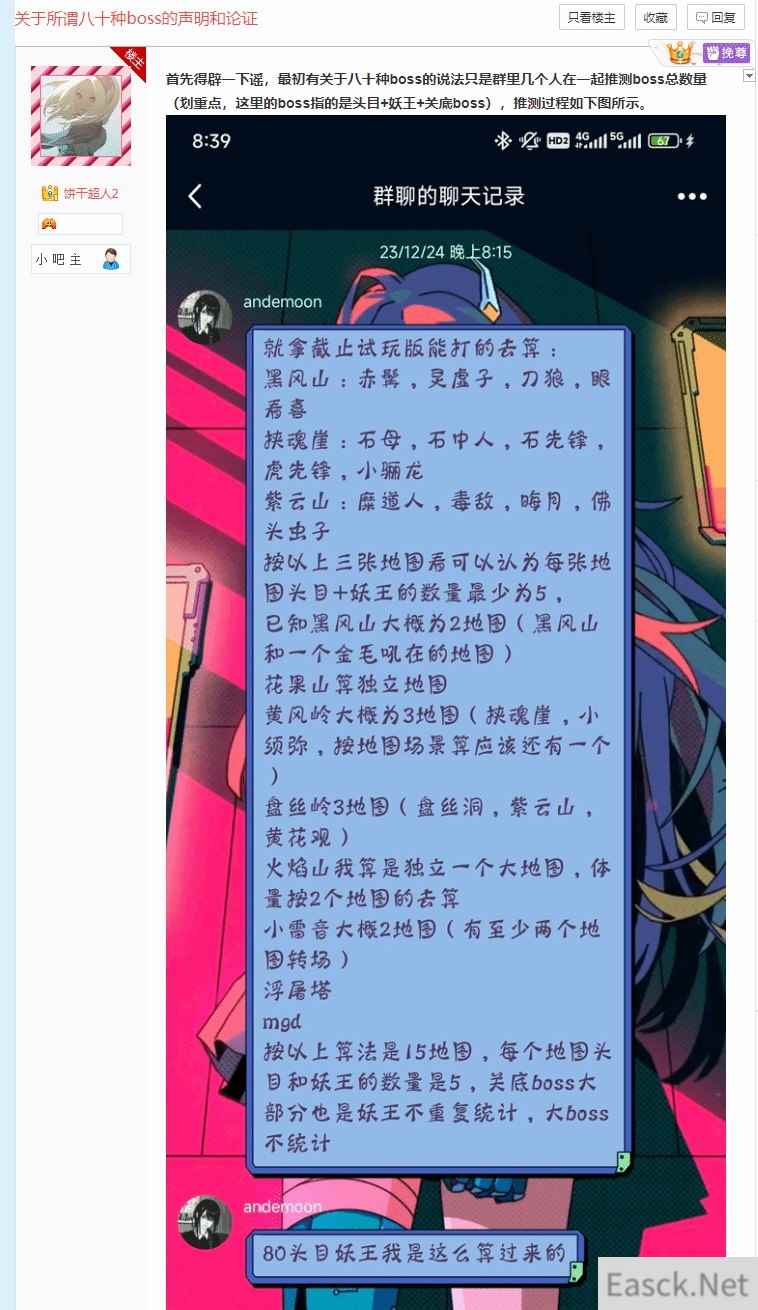 黑神话贴吧吧主表示“《黑神话》有80多个Boss、160多种敌人”的说法,是一位小吧主在群里说的,被出口转内销了。