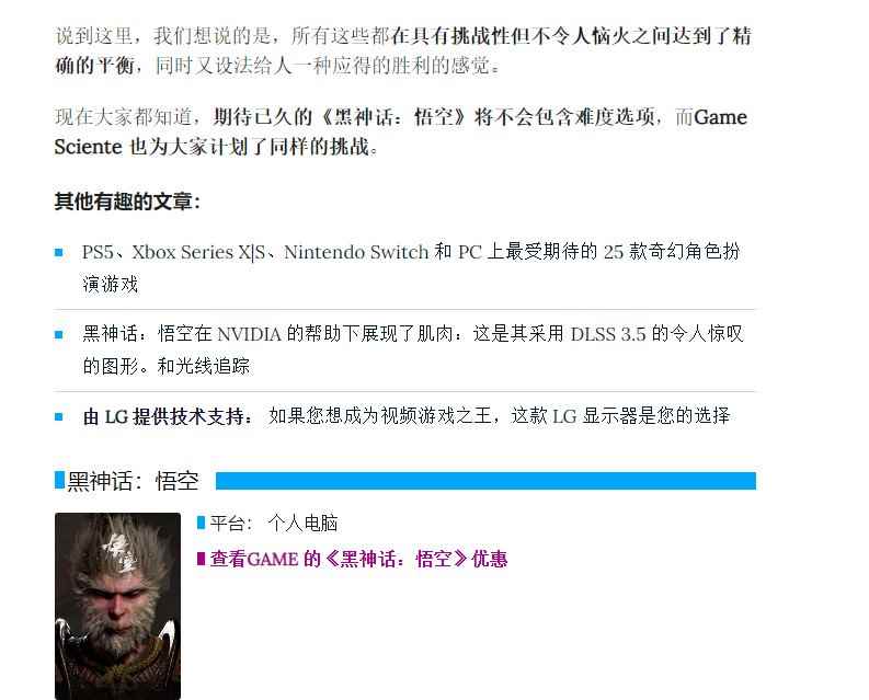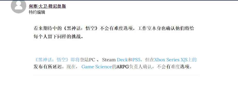 《黑神话:悟空》没有任何难度选项 只有默认统一难度