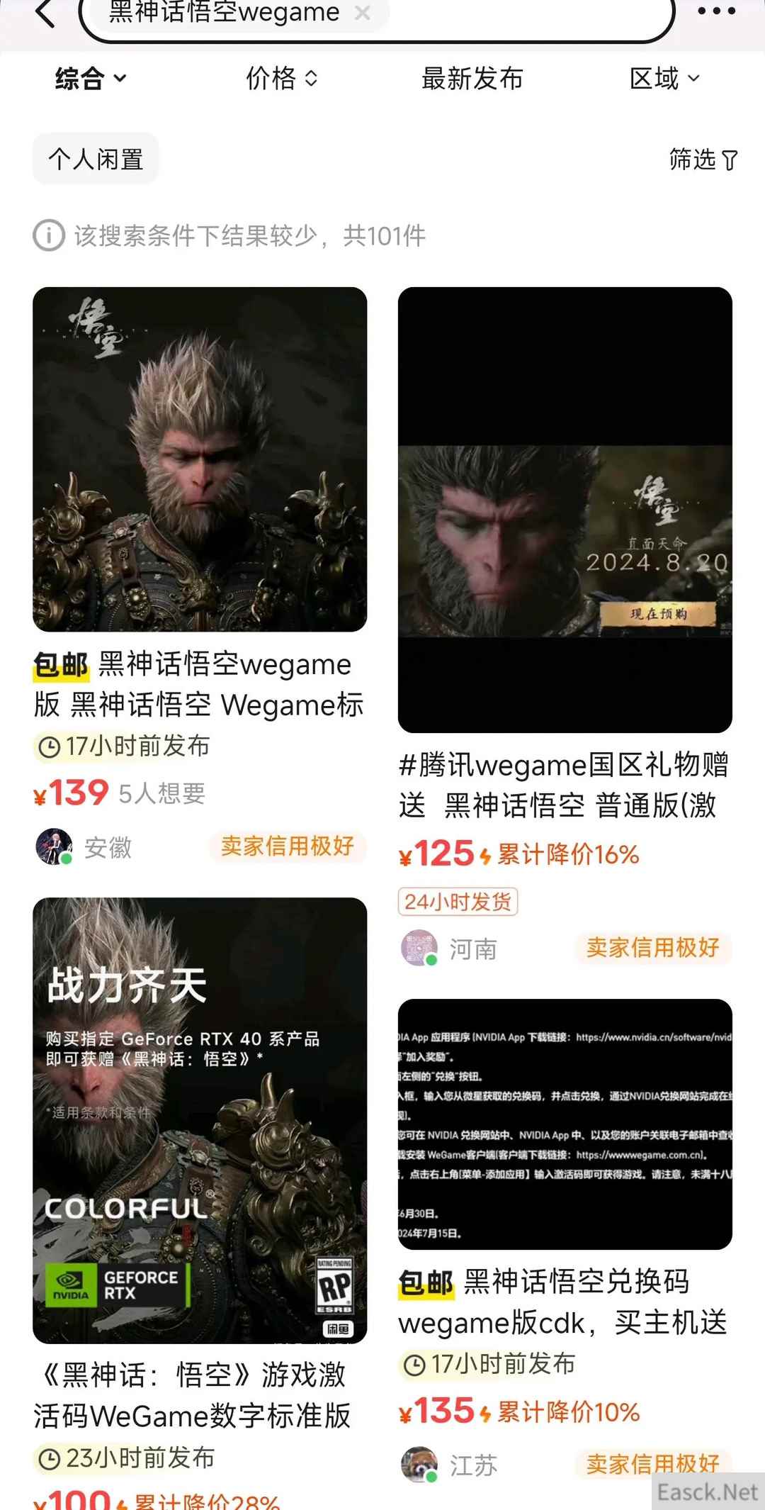 《黑神话》WeGame兑换码在闲鱼仅售100多元 价格崩了?