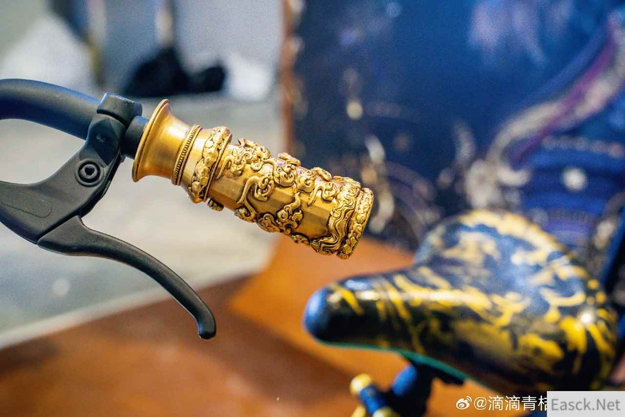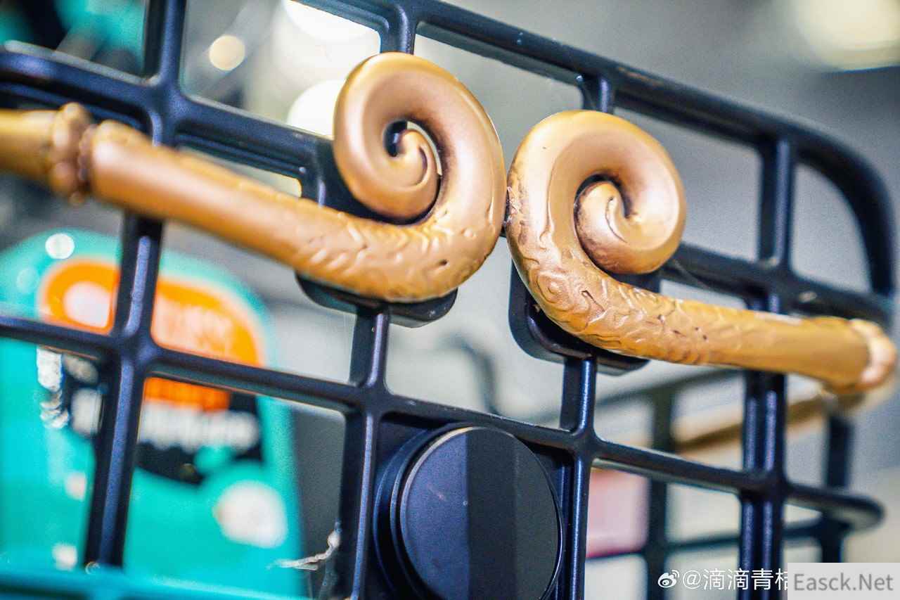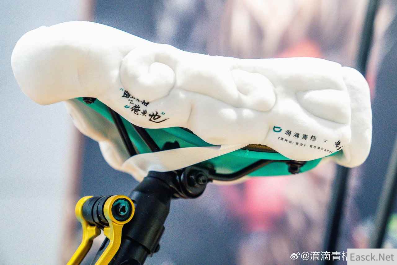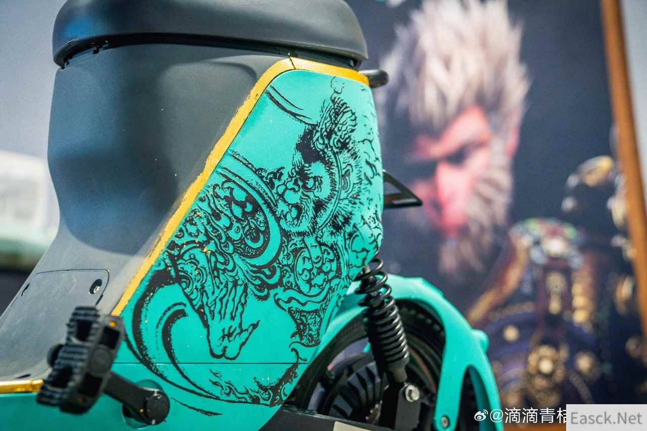 共享电单车同样以暗金色作为点缀,座位下方的空白区域还有悟空画像,十分帅气。