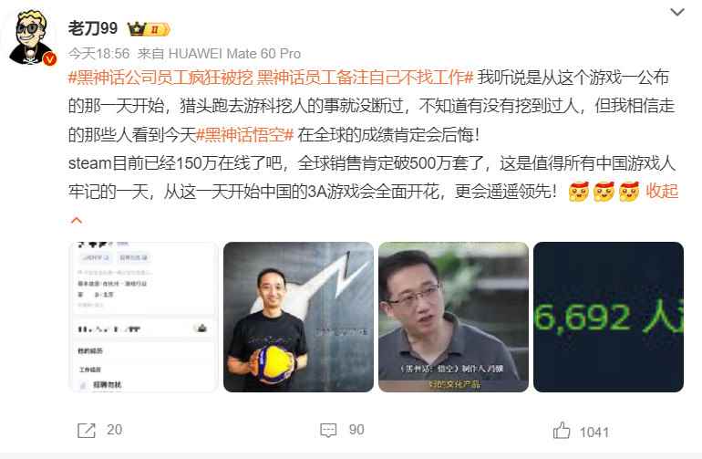 黑神话公司员工疯狂被挖登上热搜 员工标注自己不找工作
