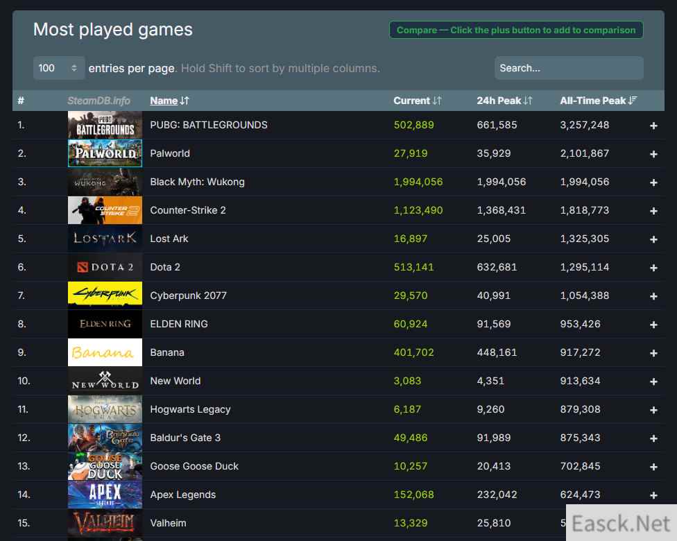 目前Steam在线峰值最高的游戏是《绝地求生》(325万),《幻兽帕鲁》(210万),目前《黑神话:悟空》以200万排列第三,将V社《CS2》抛在身后。