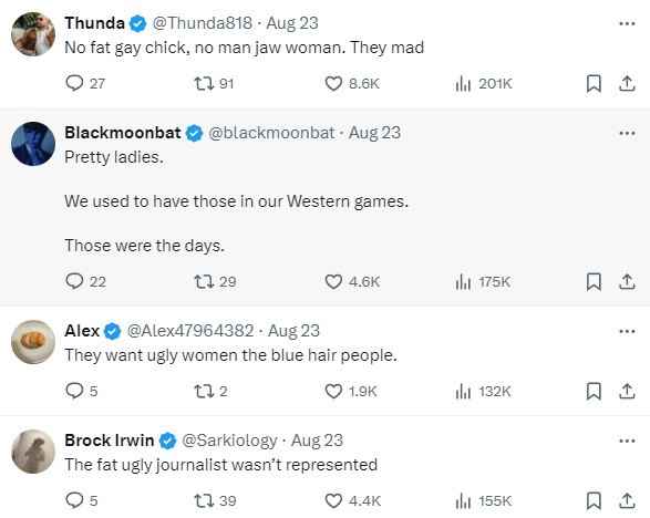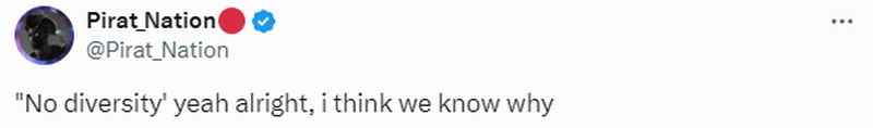 《黑神话》的美女角色也在国外社交媒体上引发热议。有推特网友发文,将之前ScreenRant“《黑神话》缺乏多样性”的言论再次拉出来。他表示:“缺乏多样性?好吧,我想我们知道为什么。”