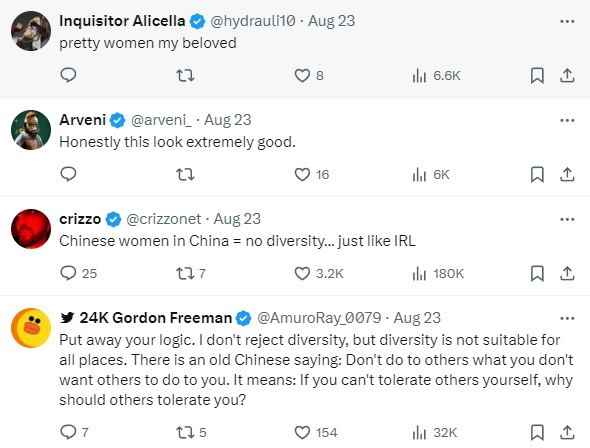 还有人表示:“漂亮的女角,我们过去的西方游戏中也有这样的角色。”“不像男人的漂亮女人,这就是为什么他们讨厌《黑神话》。”“中国女性=没有多样性……就像现实中一样!”“中国有句古话:己所不欲,勿施于人。如果你自己都不能容忍别人,别人又何必容忍你呢?”