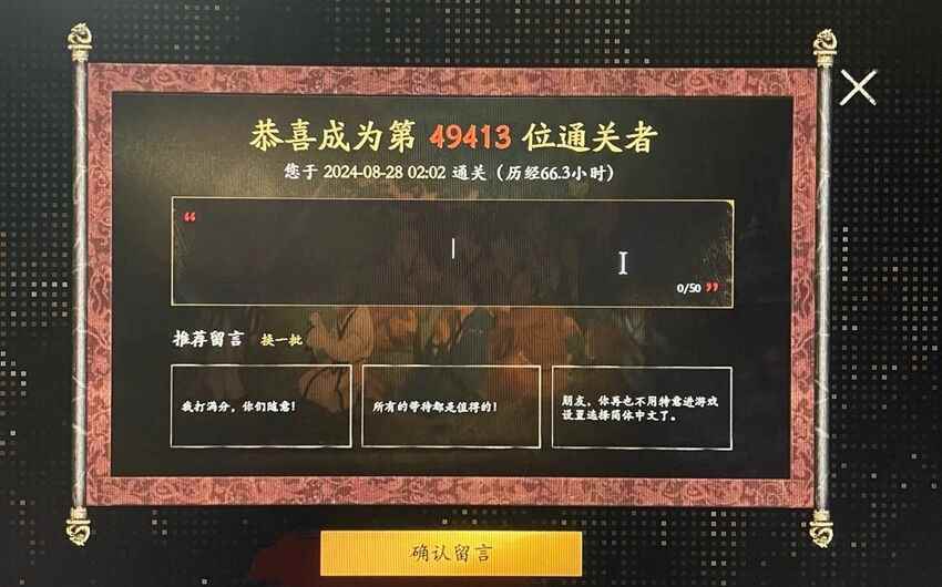 近日有网友在WeGame通关了《黑神话:悟空》,系统显示其为第49413个通关者,而有通关成就的只有百分之6.47,据此推算总销量为813137,即81万左右,这个销量来说已经很不错,详细信息请以官方公布为准。