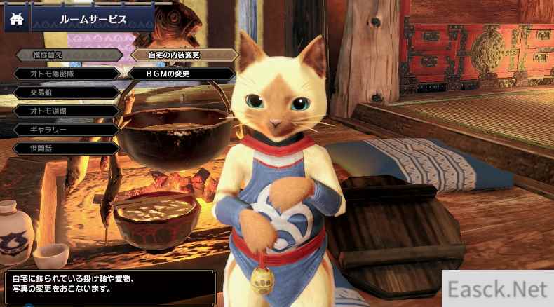 从村庄设施等地取得装饰品,再跟管家对话,便可以更改家中部份设计。另外,也可以分别更改炎火村大街、集会所、随从广场和修练场的BGM。
