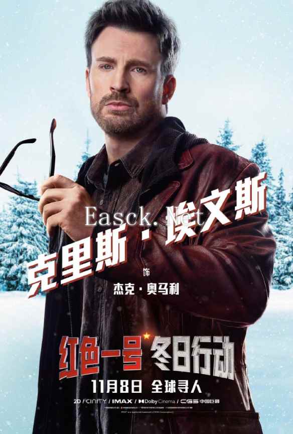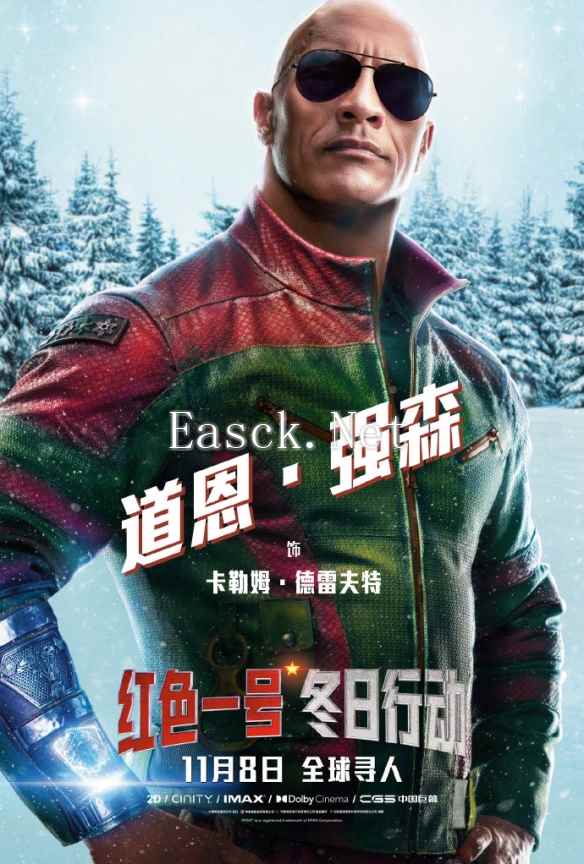 奇幻冒险喜剧片《红色一号:冬日行动》发布中文角色海报,巨石强森、克里斯·埃文斯、刘玉玲、J·K·西蒙斯、熊熊加西亚、克里斯托弗·海维尤、琪兰·席普卡、邦尼·亨特集结,已定档11月8日全国上映。