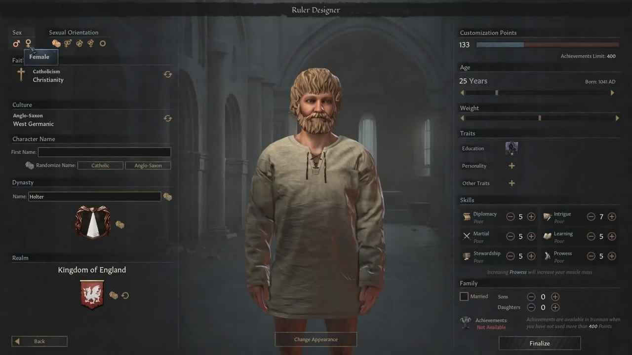 此次更新带来的角色创建器真是太酷了,能让玩家创建出自己想要的统治者形象。它不仅可以改变角色外貌,还可以改变角色的各项数值与能力。