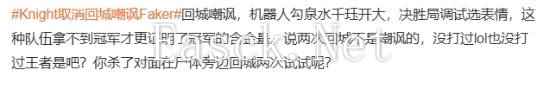 Knight取消回城嘲讽Faker引热议 网友:半场开香槟