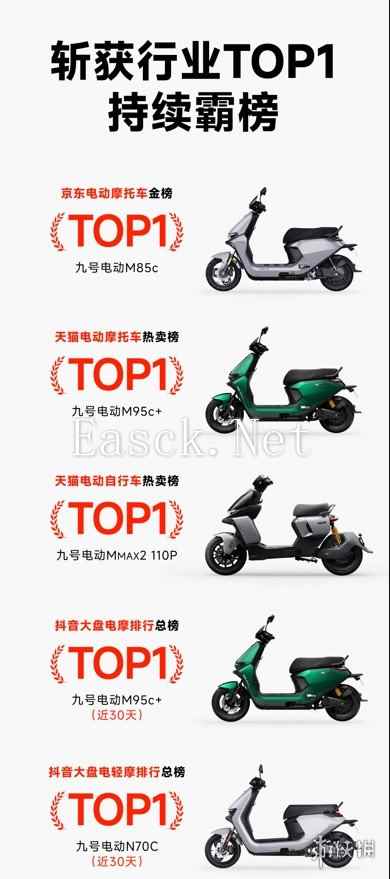 轻摩方面,九号电动N70C也持续霸榜抖音大盘电轻摩排行总榜TOP1,同样是很值得入手的爆款产品,它配备1500W大功率直驱轮毂电机,60V20Ah高能铅酸电池能实现60KM的超长三档续航,前碟后鼓的刹车配置确保安全性,还有专业阻尼式弹簧避震、一体式车架、580mm超长坐垫、422mm超长踏板等配置保障骑行舒适性。搭载RideyGO!2.0智能骑行系统,支持多种无钥匙解锁方式,也能通过APP一站式掌控车辆情况。