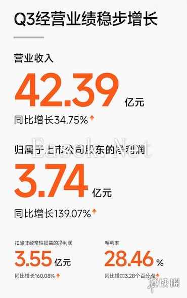 另外,除了双十一创下惊喜开门红战绩外,九号公司在近期公布的2024年第三季度业绩也显示该公司成长性、盈利性的强劲。实现Q3单季度营业收入42.39亿元,同比增长34.75%;归属于上市公司股东的净利润3.74亿元,同比增长139.07%;扣除非经常性损益后的净利润3.55亿元,同比增长160.08%。