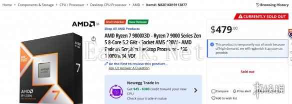 “地表最强CPU”锐龙7 9800X3D已在国外市场全面售罄!