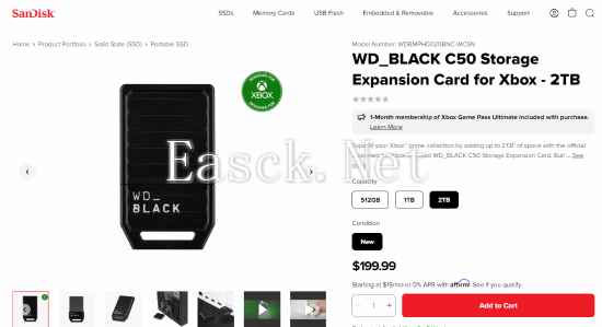 西部数据日前在官网推出了 2TB 版本的 WD_BLACK C50 扩展卡,为 Xbox Series X|S 主机的存储扩展提供了新选择。