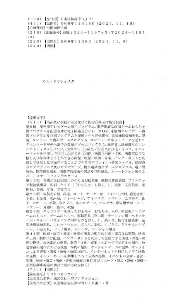 根据日本专利商标的公示结果,《奥特曼》系列作品的2025年最新作的商标公开!2025年的新奥特曼为《欧米茄奥特曼(暂译, ウルトラマンオメガ/Ultraman Omega)》。