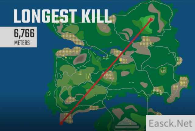 玩家的总游戏时长达到了25815年,共产生了9.66亿次死亡,56.97%的武器级杀来自步枪,击杀最多的枪是AKM,总数达到了1.14亿。而弩的击杀率小于1%。 最长的一次击杀距离为6766米,颇有“八百里外一枪干掉鬼子”的枪法。