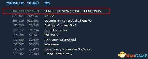 《绝地求生大逃杀》游戏最近火得一塌糊涂,据Steam统计数据显示,《绝地求生大逃杀》的同时在线人数峰值已经超过了150万人,超过了《CS:GO》与《Dota2》之和。 当前在线玩家数也稳居第一。
