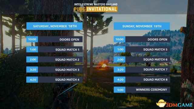 两天共进行八场四排比赛,每天四场,根据积分决定最终排名。 具体积分制度将在日后公布。 比赛模式为第一人称四排模式(Squad FPP)。 奖励