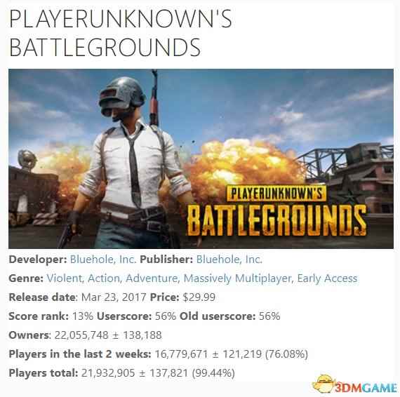 全民吃鸡中 《绝地求生》Steam销量已突破2200万