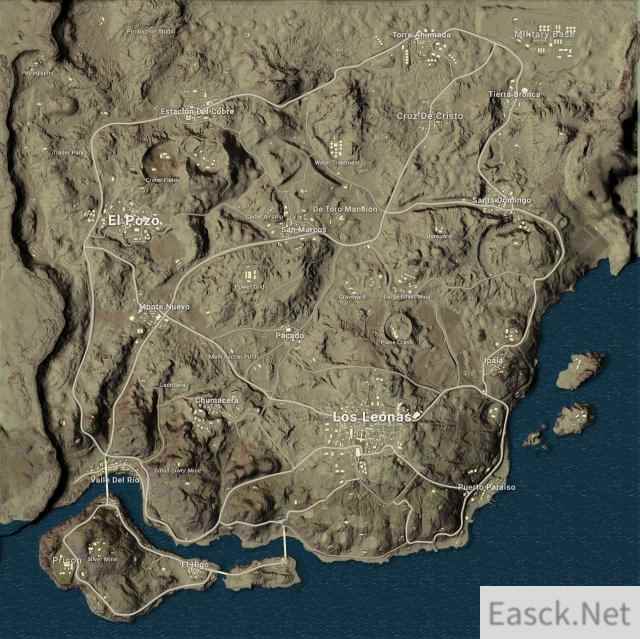 《绝地求生:大逃杀》的测试服1.0版本中已经在昨天更新了,加入了死亡回放、翻越系统、弹道修改等诸多新内容。这这些只是表面上的变化,这个测试版本中,还有一些潜在的新内容,最近被国外网友从代码中挖掘了出来。 玩家从代码中发现了新沙漠地图的全景地图,新地图的全称为Valle Coronado,就和它的名称一样,本张地图四面环山,中间是被分隔开来的谷地区域,公路绕山而行蜿蜒崎岖。