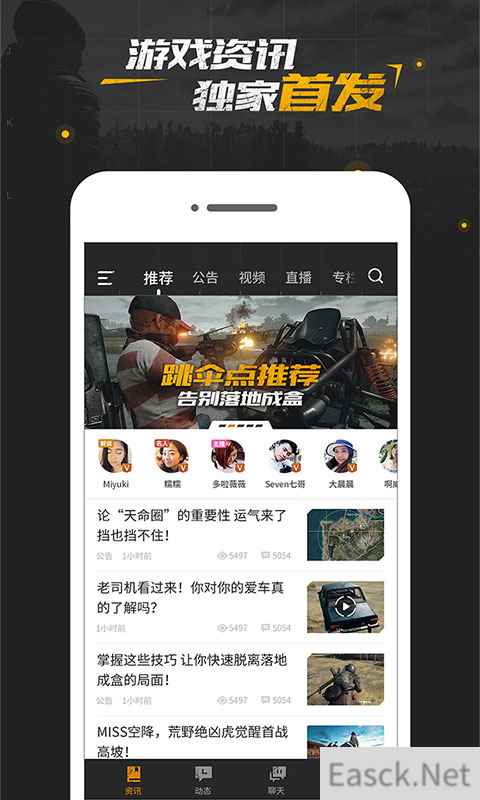 最新动态最全资讯一手掌握 最快最权威的绝地官方资讯以及独家爆料就在《绝地求生社区》官方App,让你生存有法则,落地不成盒。社区每天都会为你精心挑选最新最全最有趣的游戏新闻资讯,无论是轻松的搞笑视频、短平快的绝地资讯、抑或是当门的热门攻略,都应有尽有,手握一个《绝地求生》社区App,片刻便知圈内天下事!