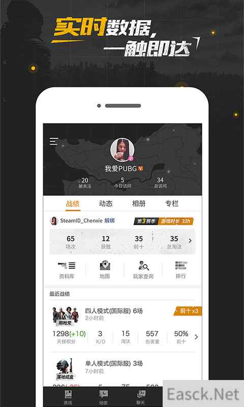 12月初腾讯游戏在腾讯游戏嘉年华(TGC)宣布为端游《绝地求生》玩家定制的官方社区APP今日已经上线,全方位的游戏辅助集资讯攻略、工具资料库、社区交流、战绩查询为一体,方便简单,功能多样,助你轻松多维度玩转绝地求生! 官方出品玩家定制,随时随地秀出战绩 《绝地求生社区》官方App是专业、安全的绝地求生辅助工具,支持一键同步游戏数据,玩家可随时进行战绩查询,包含个人生涯赢局次数、杀敌数、Rating排名等,也会根据游戏表现进行评级,再配上好友列表排名,让你更客观更准确地了解自己目前的水平。精准及时的战绩数据分析让你不会错过任何一场战绩记录,炫酷的个人主页让你能随时随地都能秀出战绩。