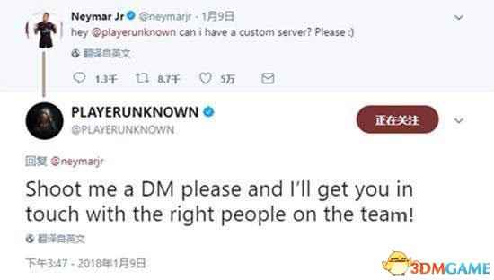 要知道,内马尔可是一位在推特上拥有近3700万关注者的超级巨星,这种近乎免费宣传游戏的机会,官方当然不会放过。官方很快回复了内马尔,希望他能私信他们,后续会有相应人员跟进。 ![]() 蓝洞曾表示停止接受自定义服务器的申请。但目前看来,他们很乐意为这位拥有数千万粉丝的大咖开个后门儿。 |