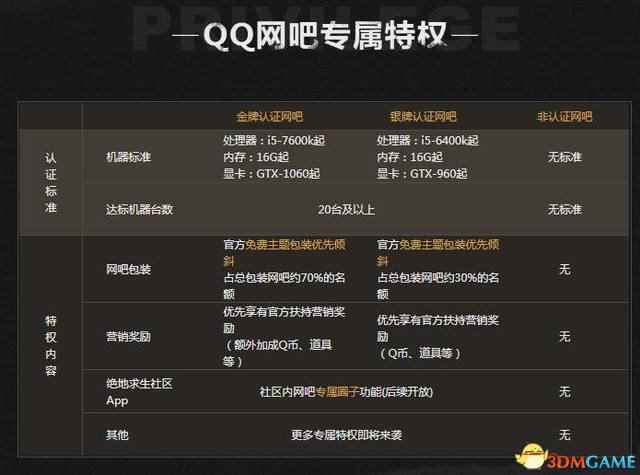 但腾讯会以什么样的方式运营《绝地求生》依然存在争议,有的玩家认为国服应该同样是买断制,会通过开箱子和时装进行盈利,和英雄联盟差不多,但也有玩家认为依照腾讯对大部分游戏的运营策略将会疯狂捞钱,推出各种影响平衡性的道具,比如CF。 近日,腾讯开启了《绝地求生》认证网吧的活动。 ![]() ![]() 绝地求生网吧的认证需要网吧的配置达到一定的要求。银牌网吧认证最低需要i5-6400k的处理器、16G内存以及GTX960显卡,想达到金牌网吧则需要i5-7600k处理器、16G内存和GTX1060的显卡。金牌网吧要求的配置,恐怕绝大部分网吧都无法达到。 小编还发现绝地求生金牌认证网吧的特权内容中有一条是额外加成Q币、道具等。Q币好说,不知道额外加成道具具体是什么,是否会影响平衡。 ![]() 对此,你怎么看呢? |