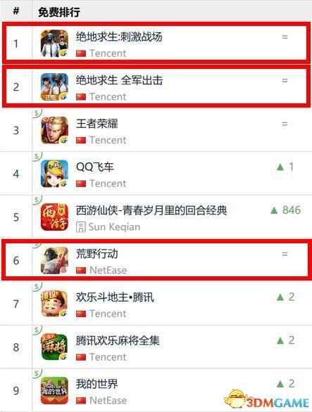 腾讯的两款吃鸡手游的上线,对网易的荒野行动是否有造成一定的影响呢?答案是肯定的,虽然网易早早的发行了吃鸡游戏,但是腾讯作为国内最大的游戏厂商,并且在获得蓝洞授权以后,更是吊足了玩家的胃口。值得一提的是,《绝地求生:全军出击》的研发团队是天美工作室,这个工作室因为《王者荣耀》的成功,在研发吃鸡手游的项目上更是备受玩家的关注。下面,我们通过一些数据来看看目前吃鸡游戏的受欢迎程度。