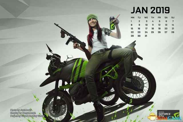 英伟达在发布针对《绝地求生:大逃杀》的优化驱动后,还推出了2018年《绝地求生》Cos主题日历。不同人物造型分别对应了12个月。 日历中的Cosplay还原度非常高,每位人物手里都握有华丽武器,不同的背景的里还出现了直升机与装甲车,同时整套图贯穿着英伟达标志性的翠绿色,霸气十足。
